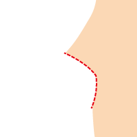 乳房切除法+たるみ取りたるみ取りも行った場合は、乳輪周囲と乳輪の下にも傷が残ります。